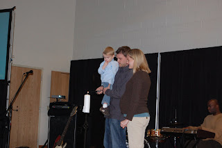 Grayson was dedicated on January 25th. Our church held a Friday night service where almost 30 kids were dedicated. Gray, Mommy and Daddy got to walk across the stage and light a candle for Grayson. Then the service proceeded with a song, parental prayer and commitment, brief message, and time of prayer. It was a sweet, little evening. We are thankful for Grayson's life!